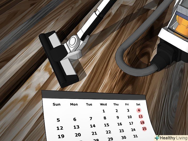 Пилососьте підлогу раз на тиждень. за допомогою пилососа ви приберете пил і бруд між дошками настилу. Налаштуйте пилосос на режим прибирання підлоги, щоб не подряпати його. Насадка з м'якою щетиною також дозволить запобігти появі подряпин. [2]