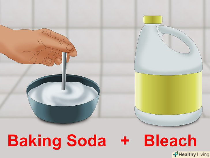 Якщо вищеописані методи не допомогли вирішити проблему, використовуйте пасту з харчової соди і хлорного відбілювача. змішайте 2 частини харчової соди і 1 частина хлорного відбілювача, щоб вийшла густа паста. Нанесіть пасту на брудний шов і почекайте 5-10 хвилин. Потім потріть шов жорсткою щіткою і почекайте ще 5-10 хвилин. Після цього змийте пасту водою. [5]- Хоча хлорний відбілювач не рекомендується змішувати з іншими речовинами, в разі харчової соди це вважається безпечним. Багато хто вважає, що даний спосіб дійсно допомагає поліпшити чистячі властивості як відбілювача, так і харчової соди.