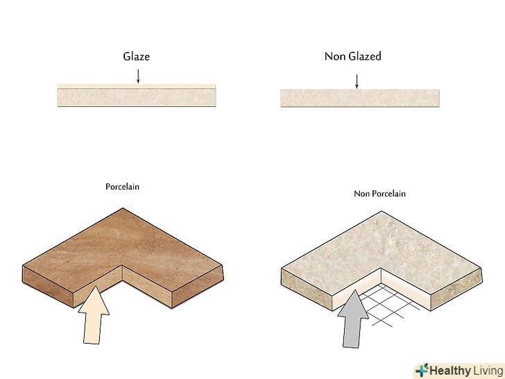 Запам'ятайте, що обидва види робляться з глини та інших матеріалів, і обпалюються в печах при температурі 1400 градусів. і керамічну і порцелянову плитку узагальнено просто називають керамічною плиткою. Ці плитки поділяються на дві групи: не порцелянові плитки і порцелянові плитки. Чи не порцелянові плитки називають керамічними, окремо від порцелянових плиток. Це вас заплутало? Давайте точніше визначимо ці дві групи.- Перша група: не порцелянові плитки як правило виготовляють з червоної або білої глиняної суміші. Їх покривають стійкою глазур'ю, що містить візерунок і колір плитки; хоча існує великий вибір фарб для плитки. Керамічні плитки використовуються для покриття стін і підлог, вони м'якше і їх легше розрізати ніж порцелянові. Ці плитки зазвичай підходять до тих місць, де на них виявляється менше впливу (менше по ним ходять), так як вони швидше зношуються і більш схильні до розколу в порівнянні з порцеляновими.