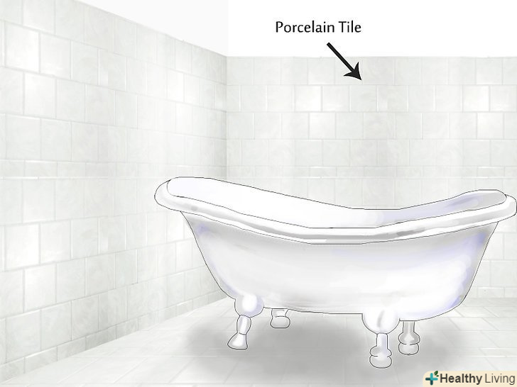 - У ванних кімнатах або пральнях використовуйте порцелянову плитку. Вона не тільки більш зносостійка за рахунок твердості, але і стійкіше до вологості. Це кращий вибір для кладки підлоги стін і ванних, душових і для кладки навколо ванн.