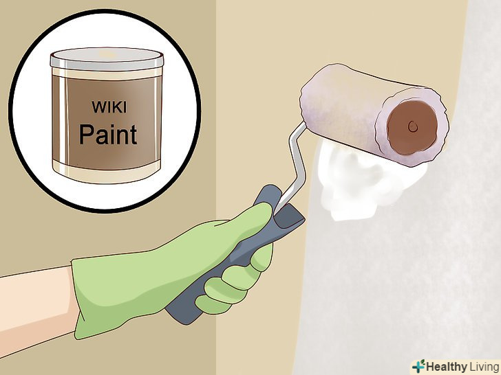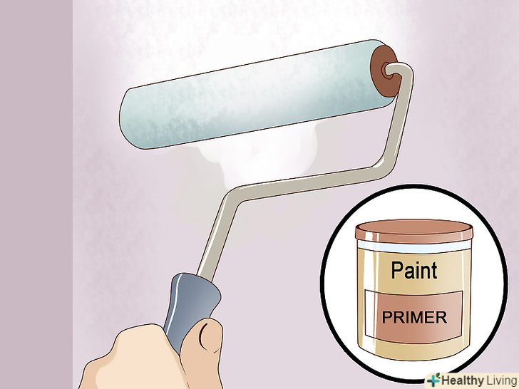 Обробіть ґрунтовкою повністю висохлу шпаклівку. якщо ремонтоване отвір на стіні гіпсокартону було невеликим, ймовірно, вам не знадобиться перефарбовувати всю стіну. Проте, якщо на стіні в різних місцях було закладено відразу кілька дірок, розумно буде перефарбувати її повністю. За допомогою валика або кисті покрийте ґрунтовкою ту область стіни, яку збираєтеся пофарбувати. [11]- Якщо ви будете фарбувати всю стіну, ретельно зачистите наждачним папером відремонтовану шпаклівкою зону. Нанесіть один шар грунтовки поверх шпаклівки і дайте йому висохнути. Потім приступите до фарбування. Вам не потрібно обробляти грунтовкою всю поверхню стіни, якщо ви не збираєтеся змінювати її колір.