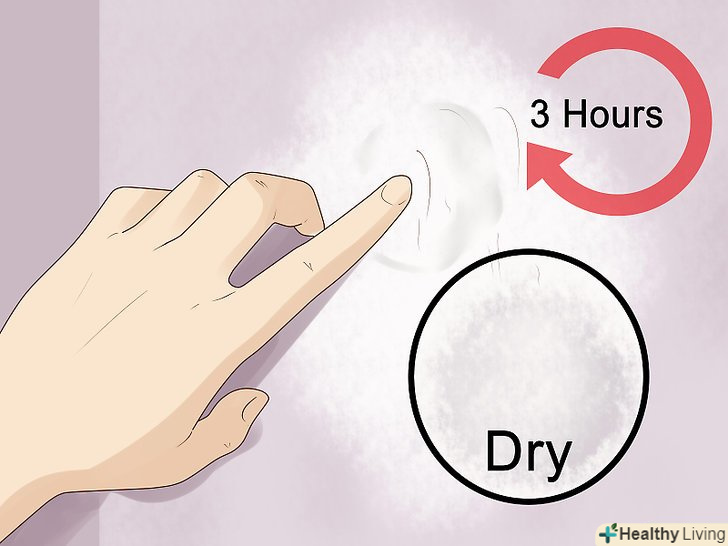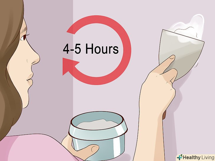 Дайте шпаклівці просохнути протягом 4-5 годин. кількість часу, який піде на висихання, залежить від розміру отвору, використаного обсягу шпаклівки і її конкретної марки. Коли шпаклівка висохне, зачистіть її наждачним папером, перш ніж наносити другий шар. [6]- Щоб переконатися в тому, що шпаклівка висохла, помацайте її пальцем.