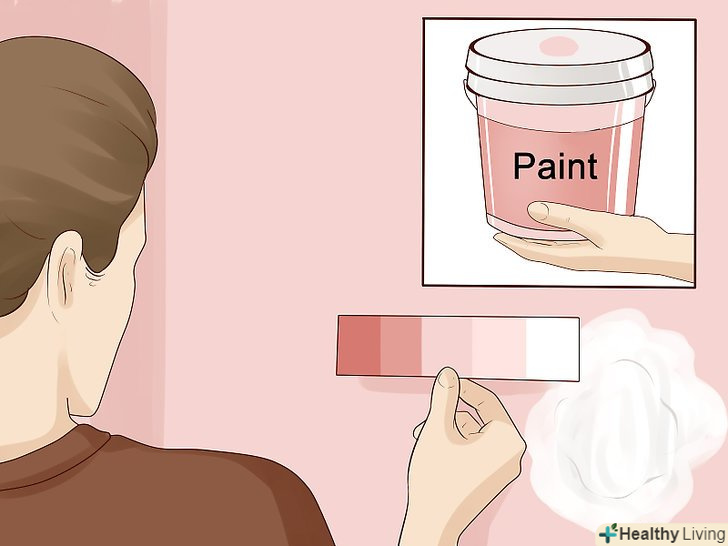Якщо ви не збираєтеся перефарбовувати всю стіну, використовуйте фарбу того ж тону, що і стара фарба. нерозумно перефарбовувати всю стіну через ремонт однієї невеликої дірки. Перевірте, чи немає у вас в гаражі, сараї або коморі залишків тієї фарби, якої була спочатку пофарбована стіна. Якщо фарби немає, зверніться в місцевий будівельний магазин або спеціалізований магазин фарб, щоб вам допомогли підібрати відповідний колір.- Якщо є така можливість, візьміть додому кольорові зразки фарби і прикладіть їх до стіни, щоб знайти точний колір, який вам необхідний.