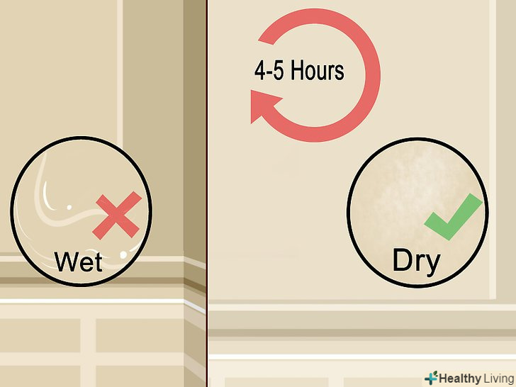 Дайте грунтовці три години на повне висихання. Грунтовка може здаватися сухою на дотик вже через годину після нанесення. Тим не менш, це не означає, що вона вже готова до фарбування. Щоб шар грунтовки повністю висох, потрібно почекати приблизно три години. [12]- Якщо в приміщенні прохолодно або дуже волого, грунтовці може знадобитися додаткова година, щоб висохнути.