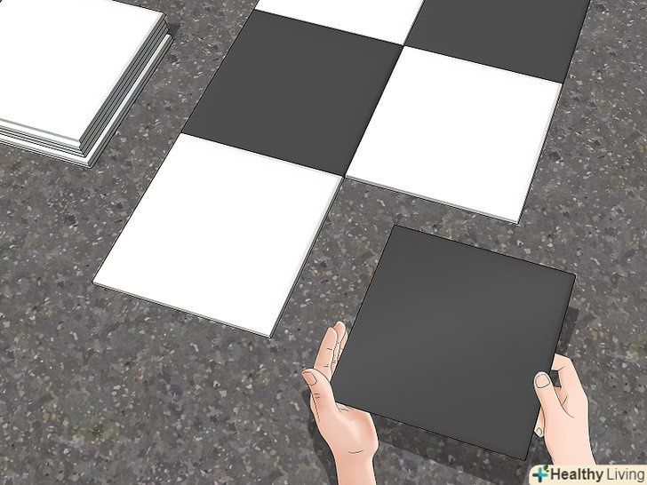 Виберіть шаховий візерунок, якщо вам необхідний класичний стиль. даний візерунок складається з чергуються в шаховому порядку плиток. Через одну повторюються однакові плитки, але при цьому строго дотримуються горизонтальні ряди і вертикальні стовпці укладання. Для отримання необхідного візерунка можна вибрати плитку будь-яких двох кольорів, тому не бійтеся проявити творчий підхід. [7]- Це один з найлегших візерунків, але він може здатися перевантаженим, якщо в кімнаті використовується і без того досить багато інших дизайнів і кольорів.