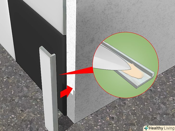 Захистіть стіни гідроізолюючим засобом, якщо кладете плитку у ванній кімнаті. наприклад, купіть кілька рулонів гідроізоляційної плівки, щоб покрити нею ту зону, де буде укладатися плитка. Скористайтеся водостійким клеєм для закріплення гідроізоляційної плівки на стіні. Переконайтеся в тому, що гідроізоляція забезпечена по всій площі, яка буде обкладатися плиткою, і почекайте 2-3 години, поки клей не висохне. [6] також можна використовувати рідкі Гідроізоляційні склади.- Гідроізоляційний шар не дозволить воді просочуватися крізь міжплиточні шви і розчин до стін і будівельних конструкцій, які можуть почати через це гнити.