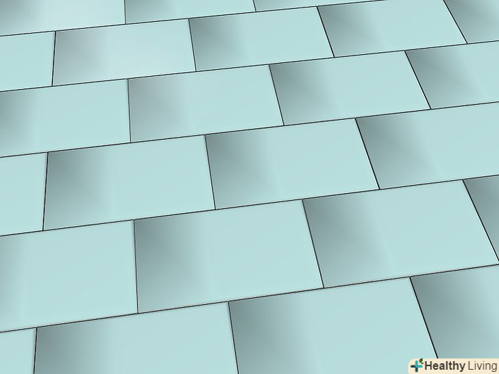 Використовуйте суворий порядок укладання вертикальних і горизонтальних рядів, щоб краще захистити стіни від вологи. цей легкий спосіб укладання плитки також помітно спрощує подальшу затірку швів. Просто викладайте прямокутну плитку, строго дотримуючись при цьому горизонтальні і вертикальні ряди. [9]- Даний візерунок виглядає особливо добре з великою плиткою, так як вона виглядає дуже природно і чисто.