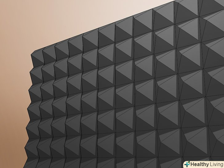 Приклейте на стіни і стелі акустичний поролон. купуйте панелі акустичного поролону в онлайн-магазині або в місцевому магазині декору, а потім приклейте їх до стін або стелі монтажним клеєм. Це особливо гарна ідея, якщо ви використовуєте цю кімнату для запису звуку. [1] Якщо ви не хочете, щоб вони сильно виділялися, купіть панелі в нейтральних кольорах, таких як чорний і сірий.- Виберіть більш яскраві кольори, на зразок червоного і рожевого, якщо хочете додати кімнаті яскравості.