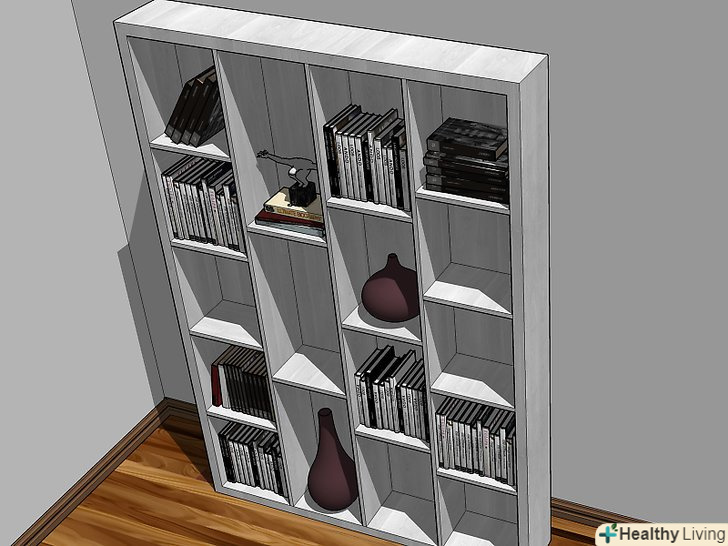 Якщо у вас є книжкові полиці, наповнені книгами, перемістіть їх у кімнату. якщо ви зберігаєте багато книг в іншій кімнаті, спробуйте перемістити їх в кімнату, в якій виникає відлуння. Наявність в кімнаті книг збільшить кількість поглинає звук матеріалу і тим самим зменшить відлуння. Книжкові полиці з задніми панелями більш ефективно поглинають звук, ніж полиці без бічної стінки. [4]