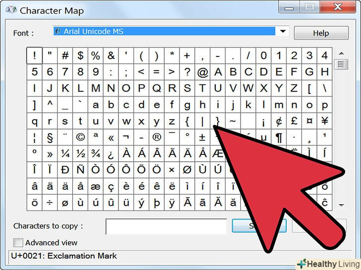 - Ви також можете відкрити службові програми і вибрати «Таблиця символів».