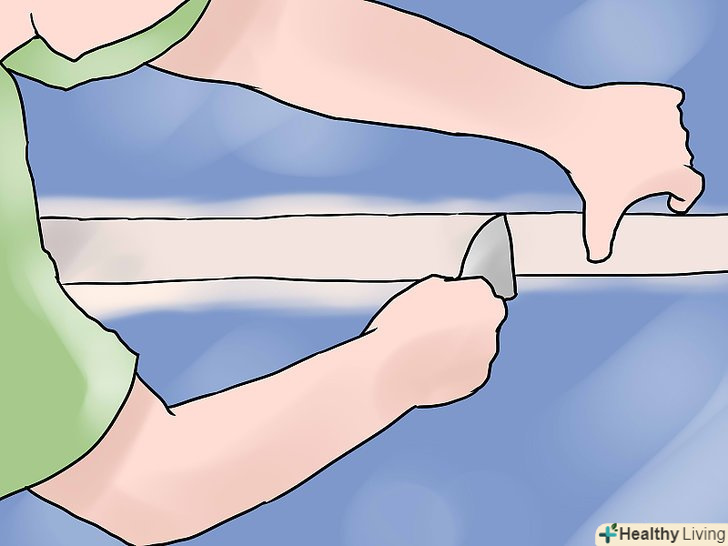 Підготуйте стрічку. відріжте шматки потрібної довжини з невеликим запасом на кінцях.- Малярську стрічку (серпянку) не потрібно мочити. Її властивості відрізняються від звичайного паперу, роблячи стрічку еластичною і ідеальною для гіпсокартону.