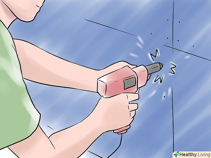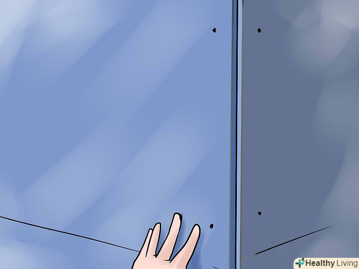 Переконайтеся, що гіпсокартон кріпиться до стіни правильно. Гіпсокартон повинен бути прикріплений по всій площі спеціальними саморізами, по довжині кожної стійки через кожні 25 см, причому він кріпиться не тільки по крайках, але і по центру. В ідеалі, він повинен триматися по кожній довгій кромці на десяти саморізах плюс два ряди по 10 саморізів, розташованих в 40 см від кожного довгого краю.- З гіпсокартоном найлегше працювати шуруповертом. Використовуйте шуруповерт, забезпечений спеціальним свердлом, призначеним для гіпсокартону. Ці інструменти ідеально зенкують гнізда під кожен саморіз, який ви вкручуєте в гіпсокартон.