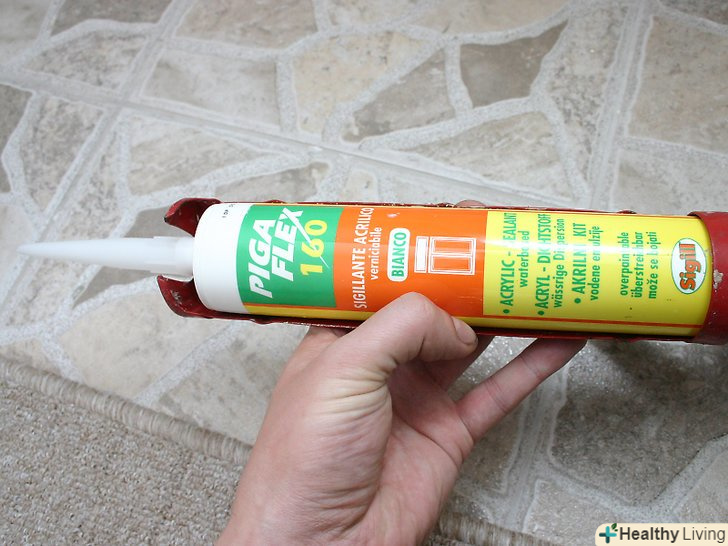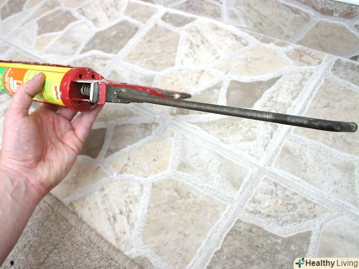 Зріжте кінчик туби з силіконом під кутом 45 градусів. отвір повинен бути приблизно таким же, як шов між плиткою, це дозволить наносити потрібну кількість герметика.