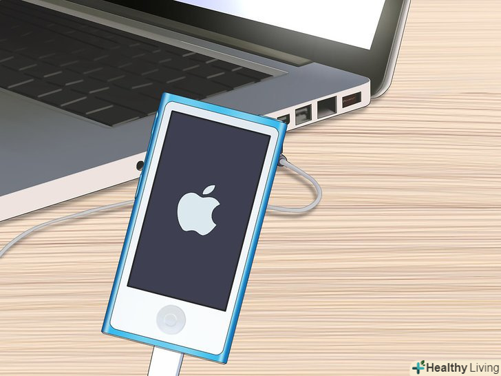 Підключіть iPod Nano до Apple зарядці USB шнура, за допомогою довгого і плоского 30-контактного роз'єму на нижній частині iPod Nano.