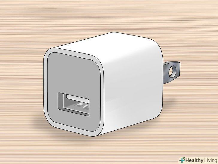 Придбайте адаптер живлення Apple.це пристрій, який має інкрустований порт USB. Воно має стандартний 2-спрямований вихід і сумісна з кабелем Apple USB. [4]- Ви також можете знайти універсальні USB адаптери живлення в інтернеті або в магазинах техніки.