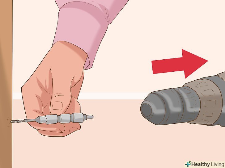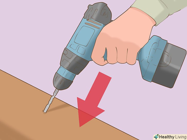 Свердлите дрилем, надаючи на неї стабільний тиск. міцно тримайте дриль і злегка натискайте на неї, поглиблюючи отвір в матеріалі, який свердлите. Якщо легкого натиску недостатньо для свердління отвору, ймовірно, ви використовуєте невідповідний свердло. [13]