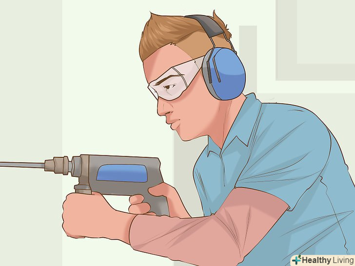 Якщо ви регулярно працюєте з дрилем, використовуйте засоби захисту слуху. Ручна дриль створює шум гучністю близько 90 децибел, чого цілком достатньо для пошкодження слуху, якщо піддаватися такому впливу протягом тривалого періоду часу. [1] [2] проте більшість акумуляторних дрилів працює тихо і не вимагає захисту слуху.- Перфораторні дрилі (ударного типу) є самими гучними і видають шум гучністю більше 100 децибел. З ними завжди рекомендується використовувати засоби захисту слуху.