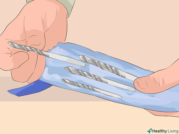 - Запустіть дриль і подивіться на обертання свердла в повітрі. Якщо воно коливається з боку в бік або його кінчик при обертанні набуває розмиті обриси, то свердло погнуто або неправильно зафіксовано. Без жалю викидайте погнуті Свердла, так як вони легко ламаються під час свердління. [8]