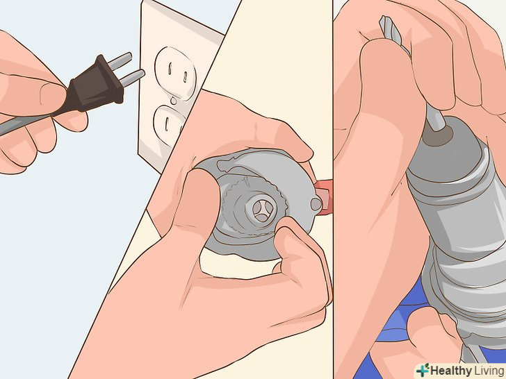 Не витягайте силою заклинило свердло. якщо свердло застрягне в матеріалі, не намагайтеся висмикнути його за допомогою дрилі. Вимкніть дриль, від'єднайте його від свердла і витягніть свердло за допомогою ручних інструментів. [16]