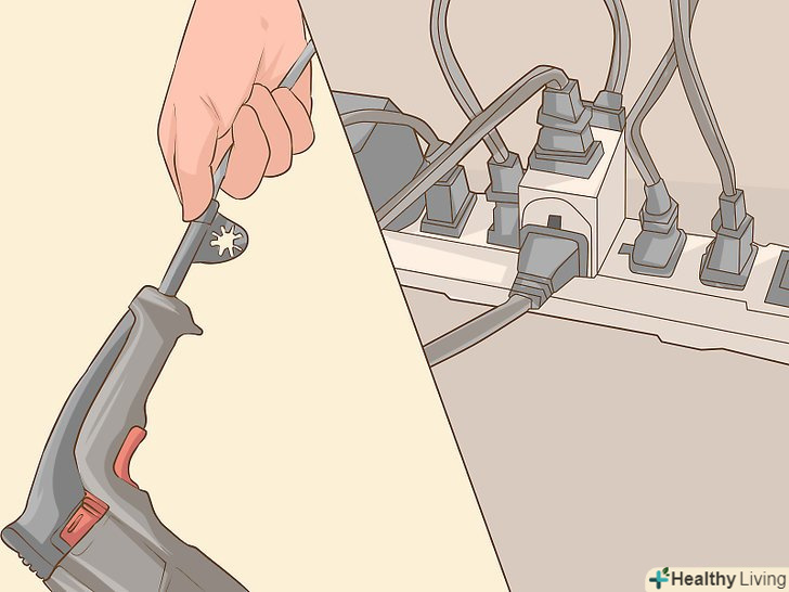 Безпечно поводьтеся з електропроводом. якщо ви працюєте з дротовим дрилем, ніколи не кидайте дріт в розтягнутому поперек дороги положенні, коли дриль тимчасово не використовується. Ніколи не піднімайте дриль за дріт. Якщо вам необхідно що-небудь просвердлити у вологій або брудній зоні, краще використовуйте акумуляторну дриль. [10]- Якщо вам необхідно підключити дриль через подовжувач, звіртеся з інструкцією щодо вимог до мінімального перетину подовжує дроти (якщо у вас немає впевненої відповіді на дане питання, використовуйте Подовжувач з жилами перетином не менше 1,5 мм 2 ). Не підключайте послідовно кілька подовжувачів, на вулиці користуйтеся вуличними подовжувачами, а не домашніми. Крім того, не рекомендується підключати дриль до мережі через перехідники. [11]