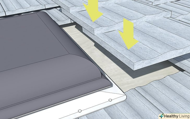 Зафіксуйте черепицю.- Нанесіть Покрівельний клей під низ відокремленої черепиці. Наносите клей тільки на ту черепицю, яка накриває задню сторону і боки фланців віддушини.