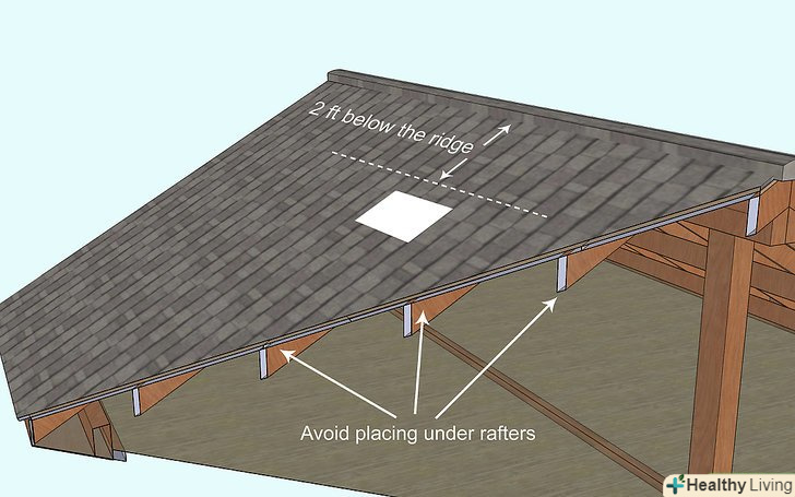 Визначте місце розташування.- У бажаному місці установки вентиляційного отвору вбийте в стелю горища цвях. Цвях повинен бути достатньої довжини, щоб вийти назовні. Коли ви будете зовні, то побачите стирчить з даху цвях.