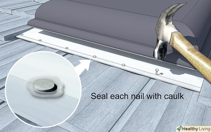 Закріпіть віддушину вентиляційного отвору.- Закріпіть фланець до даху, використовуючи молоток і цвяхи.