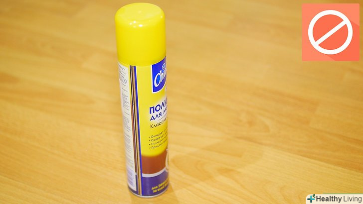 Ніколи не наносите на підлогу віск або поліроль. ламінована підлога сама по собі має блискуче покриття, тому вам не потрібно полірувати його або наносити віск. Насправді ці кошти можуть зіпсувати підлогу і зробити його більш тьмяним. [12]- Щоб підлога залишалася блискучою, регулярно протирайте її миючим засобом для ламінату.