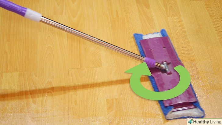 Регулярно протирайте підлогу шваброю з відповідним миючим засобом. мийте підлогу щотижня відразу після прибирання пилососом. Мийте підлогу невеликими ділянками, розпилюючи миючий засіб прямо на підлогу і протираючи його шваброю з мікрофібри. Щоб зберегти блиск, використовуйте покупне або саморобний засіб для чищення, спеціально призначене для ламінату.- Щоб запобігти потьмяніння, не користуйтеся миючими засобами, які містять мило, масла або агресивні хімікати. [9]