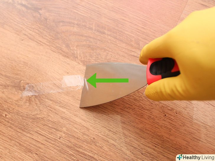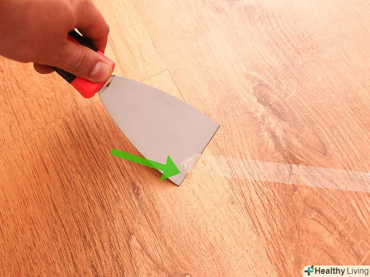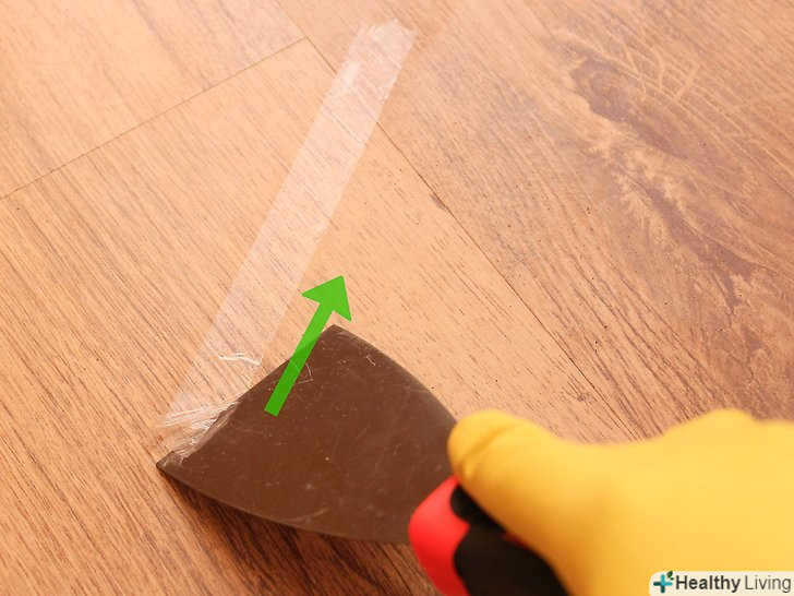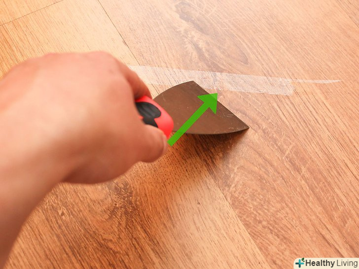 Видаліть залишки клею скребком. акуратно проведіть скребком для підлоги по поверхні клею. Дійте обережно, щоб не пошкодити підлогу.