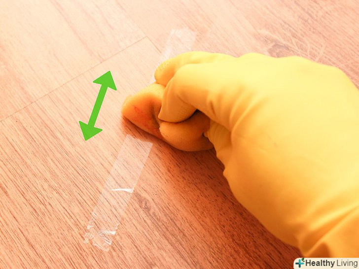 Протестуйте засіб для видалення клею. Обов'язково перевірте засіб для видалення клею, щоб оцінити його ефективність. Нанесіть засіб для видалення клею на невелику ділянку підлоги, щоб дізнатися, чи не призведе це до будь-яких негативних наслідків, наприклад, до фарбування дерева.