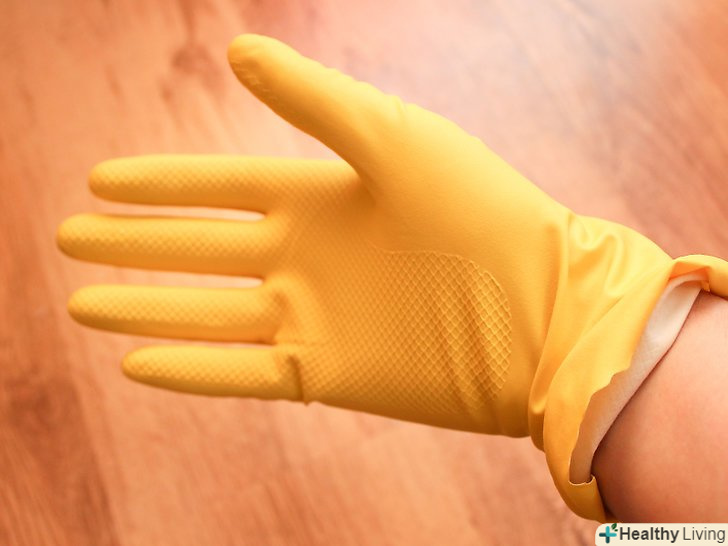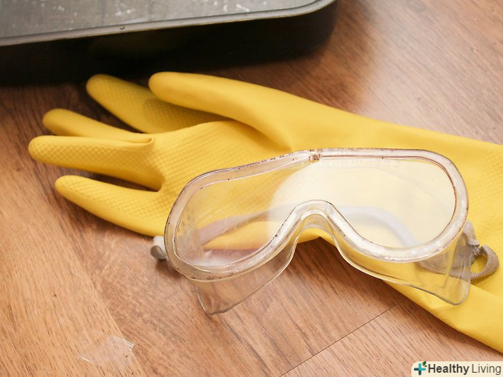 Одягніть рукавички, захисні окуляри та маску. магазинні засоби для видалення клею досить їдкі. Щоб захистити руки від хімікатів, дуже важливо, щоб на вас були надіті гумові рукавички. Захисні окуляри і маска також не будуть зайвими. [6]
