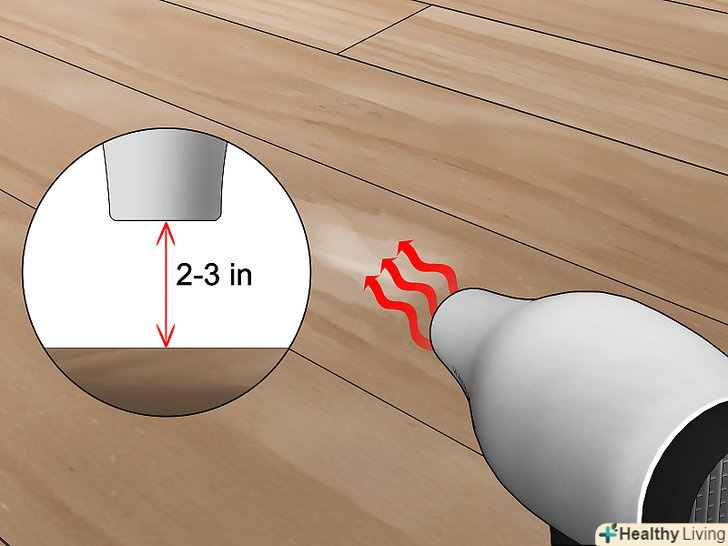 Нагрійте клей. направте промисловий фен на клей. Опустіть промисловий фен якомога ближче до клею, але не торкайтеся його. Прогрівайте клей, поки той не почне плавитися.