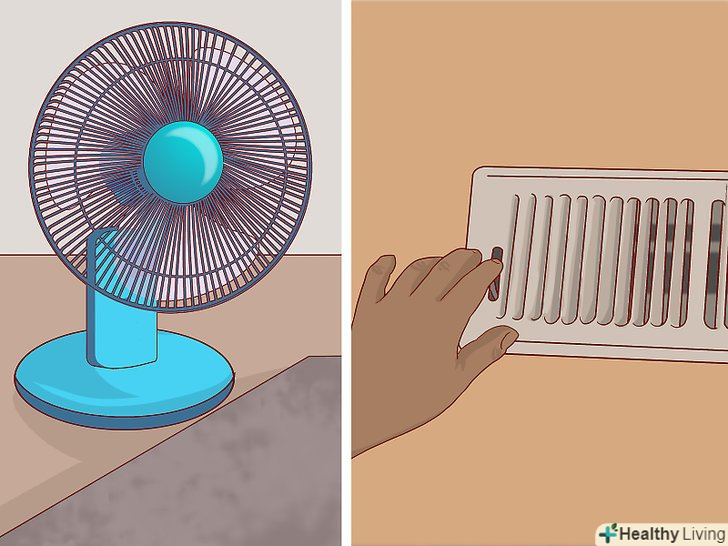 Увімкніть вентилятори та вентиляційні витяжки. під час видалення сажі дуже важлива вентиляція, так як вона забезпечить постійний приплив свіжого повітря і дозволить йому циркулювати по кімнаті. Увімкніть стельовий вентилятор, встановіть підлоговий вентилятор, а також включіть витяжку в таких кімнатах, як кухня або ванна. [2]