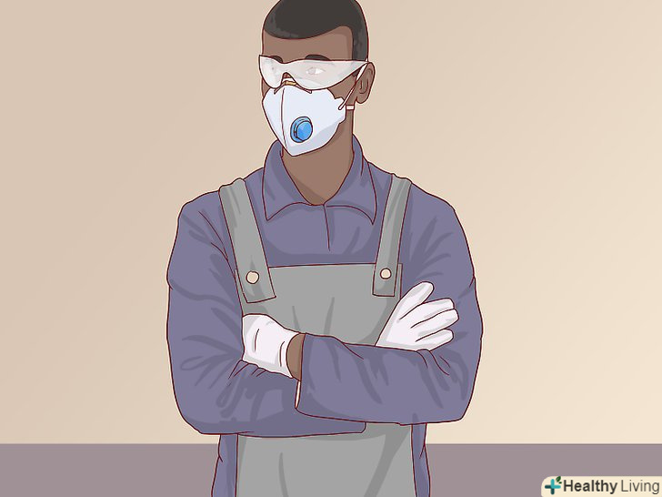 Одягніть індивідуальні засоби захисту. щоб захистити очі, шкіру і легені від частинок сажі під час робіт з її видалення, необхідно скористатися повним спектром засобів індивідуального захисту. До засобів, якими розумно буде скористатися, відносять: [3]- Захисні окуляри;