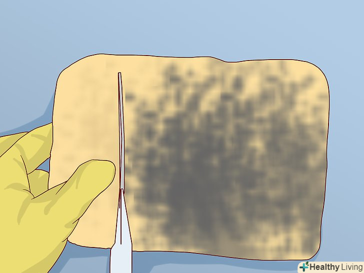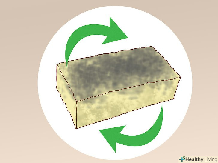 Зрізайте з губки забиті сажею зовнішні шари поверхні. покладіть губку на плоску поверхню. Притримайте її однією рукою, а іншою рукою за допомогою господарського або будівельного ножа, або за допомогою леза зріжте з губки брудний зовнішній шар. Повертайте губку і обрізайте її до тих пір, поки не зріжете всі забиті сажею поверхні. [8]- Коли губка знову стане чистою, можна буде повернутися до усунення сажі.