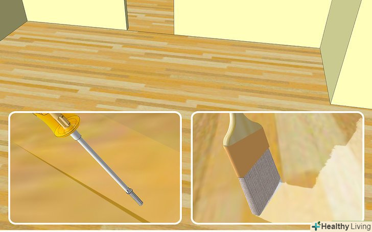 Підготовка для нового килимового покриття. це прекрасна можливість для ремонту пошкоджень і видалення скрипів.- Прикрутіть настил підлоги до балок підлоги довгими шурупами по дереву в тих місцях, де підлога скрипить.