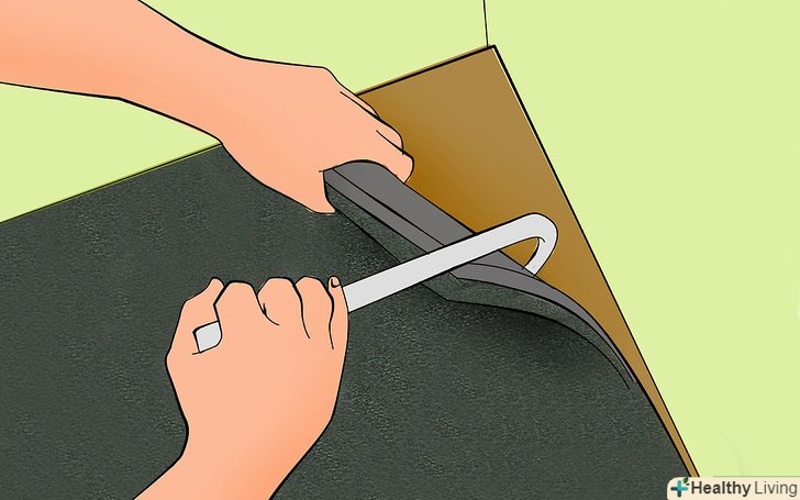 Підніміть край килима біля однієї зі стін. якщо буде потрібно, використовуйте плоскогубці щоб вхопитися за волокно.