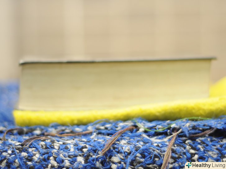 Висушіть. щоб позбутися від залишків плями і миючих засобів, покладіть на оброблену область кілька листів паперового рушника і притисніть зверху чимось важким, наприклад, товстими книгами.- Якщо не хочете пошкодити вантаж, покладіть між ним і серветками пластиковий пакет. Це не дасть фарбі від вантажу проникнути в килим і навпаки.