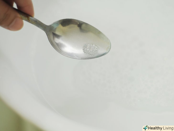 Розведіть миючий засіб у воді. розмішайте чверть чайної ложки м'якого засобу для килимових покриттів (або іншого безбарвного миючого засобу) в літрі теплої води.