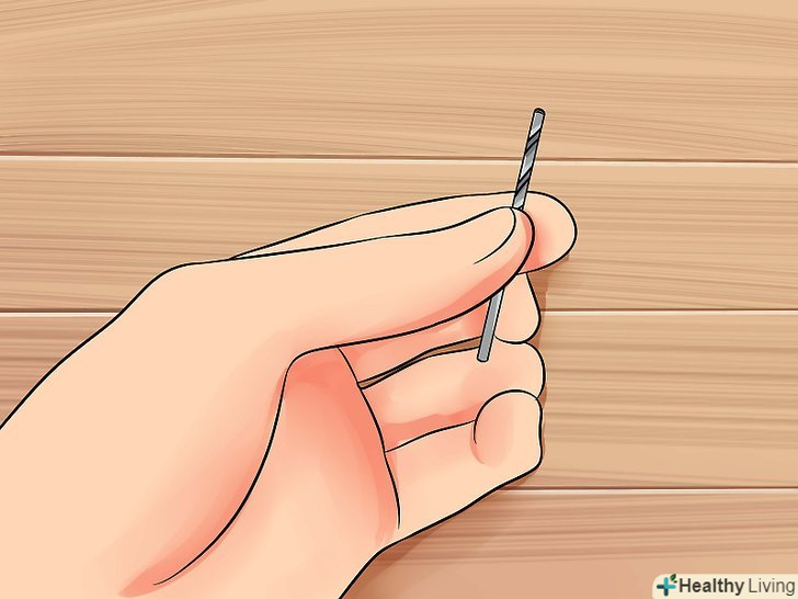 Вставте в дриль свердло, відповідне за розміром до дюбеля. як правило, їх діаметр вимірюється в міліметрах. Наприклад, для дюбеля третього розміру потрібно свердло діаметром три міліметри. Можна докласти Свердло до дюбеля, порівнявши їх діаметри.- Якщо у вас немає електричної дрилі, знайдіть цвях відповідного діаметру і забийте його в стіну, виконавши в ній початкове поглиблення.