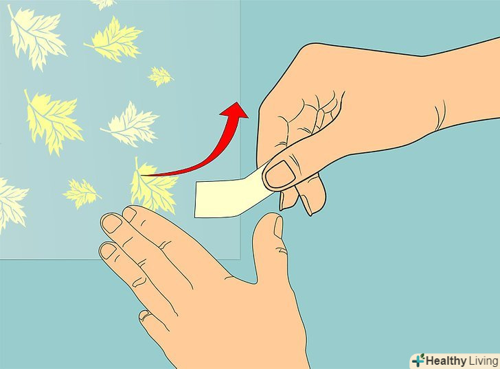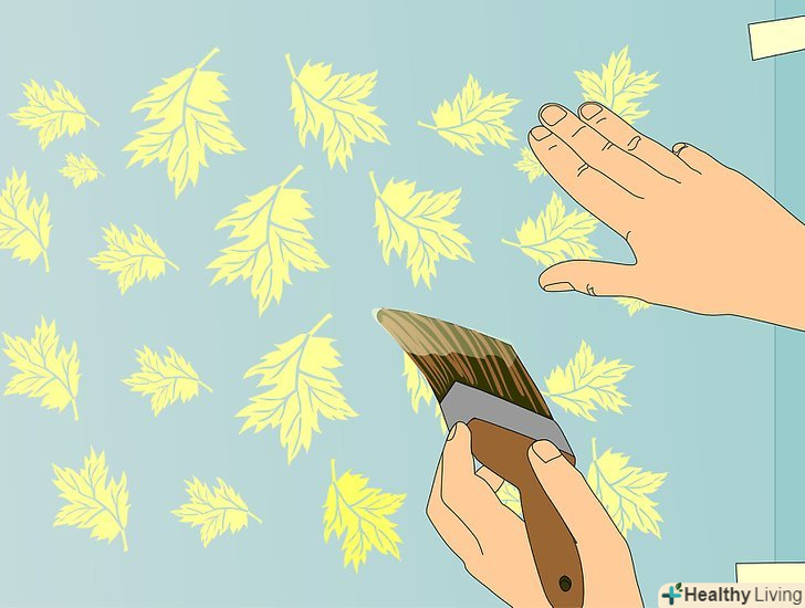 Використовуйте 2-3 невеликі шматочки маскувальної стрічки, щоб зафіксувати трафарет на стіні.