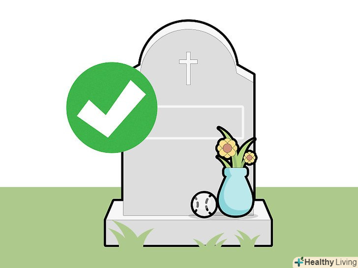 Прикрасьте могилу. крім правильного догляду за надгробком існують і інші способи вшанувати пам'ять про близьку людину. Наприклад, можна прикрасити могилу, щоб проявити турботу про покійну людину. [12]- Залиште букет квітів біля надгробка або посадіть живі рослини. Відвідуйте покійного на свята, річниці, дні народження і поминальні дні.