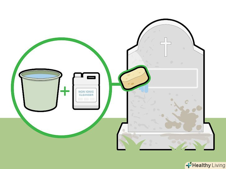 Купуйте неіонний миючий засіб. Час і атмосферні впливи не дозволяють каменю зберігати свій первозданний вигляд. Якщо надгробок забруднилося, то прийшов час ретельного очищення. Вибирайте відповідні засоби. [2]- Агресивні хімікати можуть пошкодити камінь. Вибирайте м'які миючі засоби.