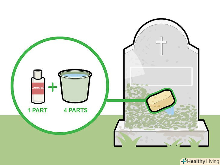 Мармурові надгробки. важливо визначити тип каменю, який потрібно очистити. Різний матеріал вимагає різного підходу. Поводитися з мармуром необхідно ще дбайливіше, ніж з гранітом. [7]- Для початку змочіть плиту чистою водою. Рослинність можна видалити дерев'яною лопаткою.