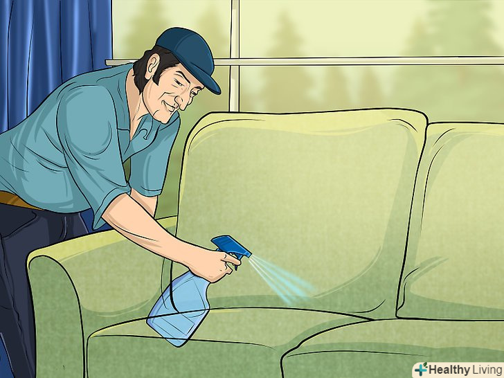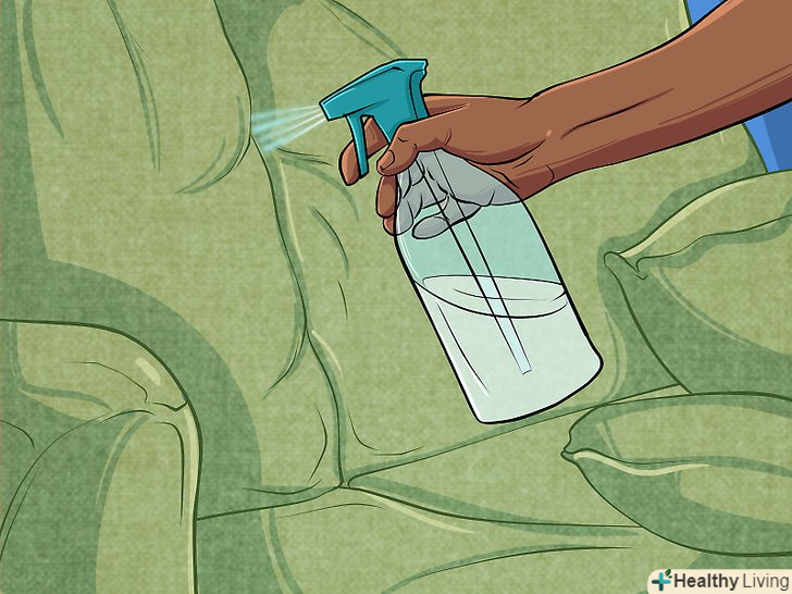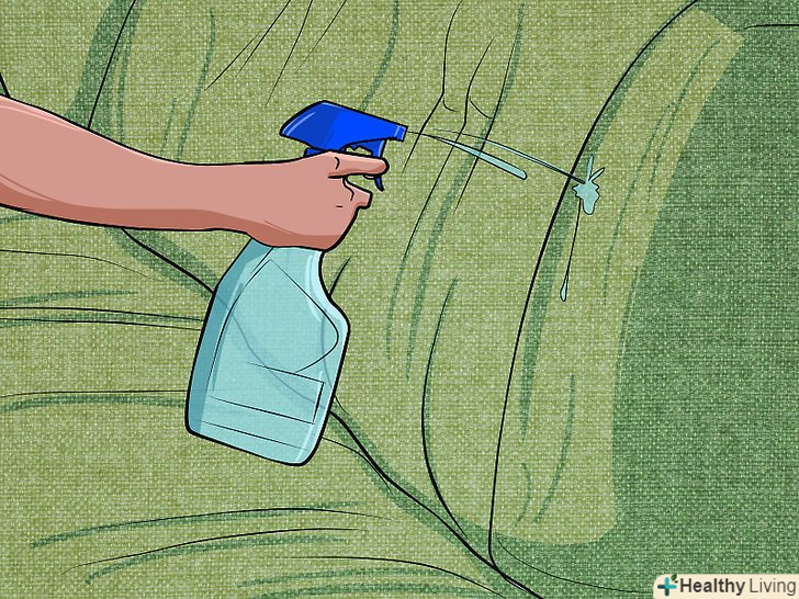 Обробіть диван миючим засобом. Візьміть очищувач і при необхідності перелийте його в пульверизатор. Обробіть поверхню дивана миючим засобом, поки вона не стане вологою на дотик. Якщо ви хочете видалити пляму, обробіть тільки його. [5]
