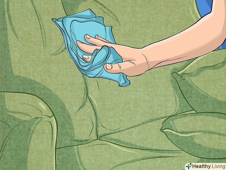 Промокніть диван. відставте очищувач в сторону і візьміть в руки чисту ганчірку. Промокніть або втирайте очищувач в оббивку дивана. Сконцентруйтеся на найбрудніших ділянках і не переставайте промокати або обережно терти плями, поки ті не зникнуть. [6]- Більшість миючих засобів для диванів не потрібно змивати. Достатньо лише промокнути їх ганчіркою. Але якщо використовується вами засіб необхідно змивати, обов'язково зробіть так, як сказано в інструкції на упаковці.