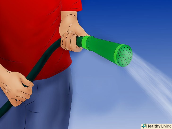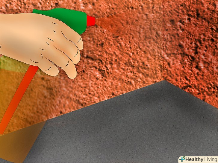 Зволожуйте бетон водою за допомогою садового шланга та розпилювача. це повинен бути водяний туман, такий легкий, щоб вода не скочувалася з поверхні.