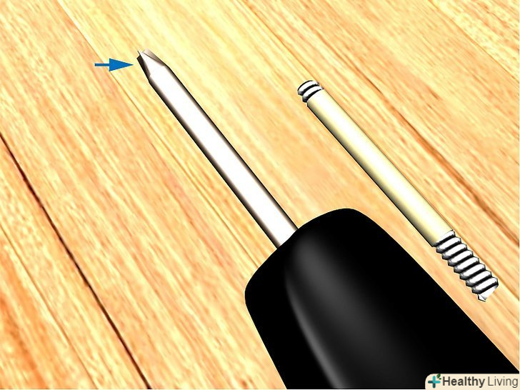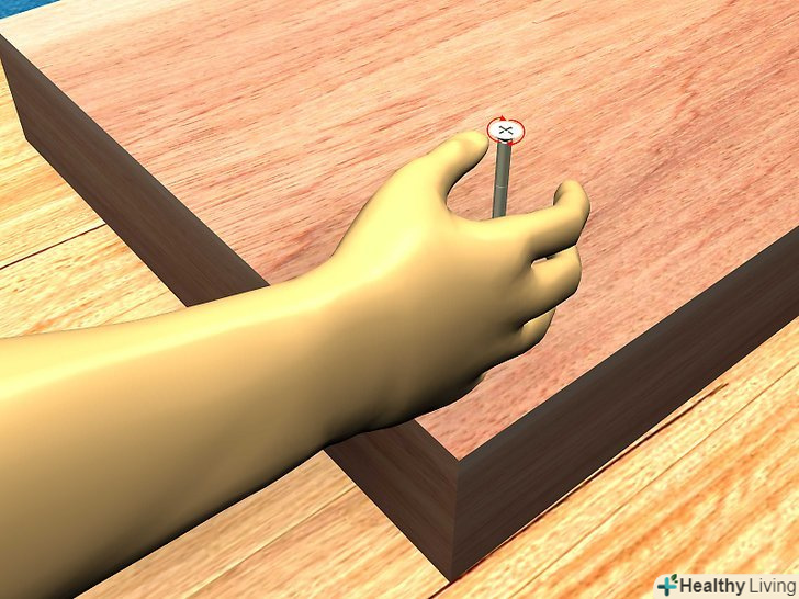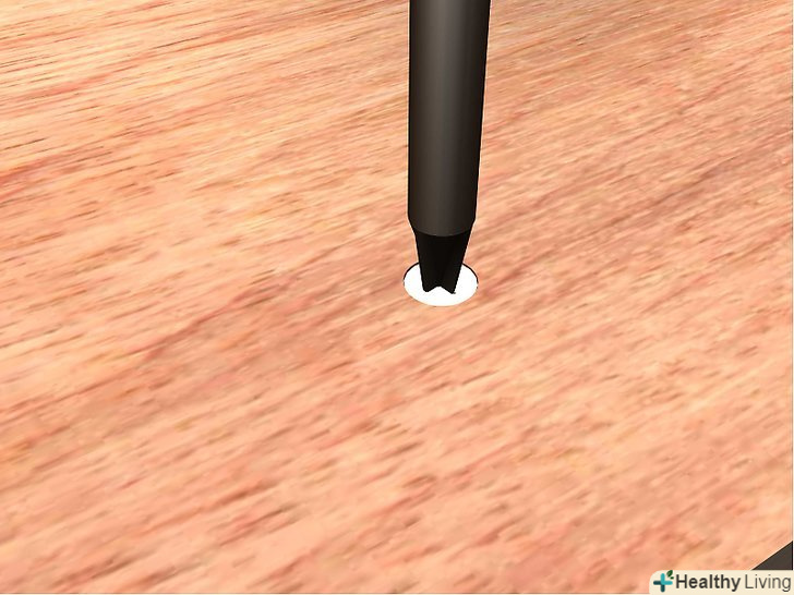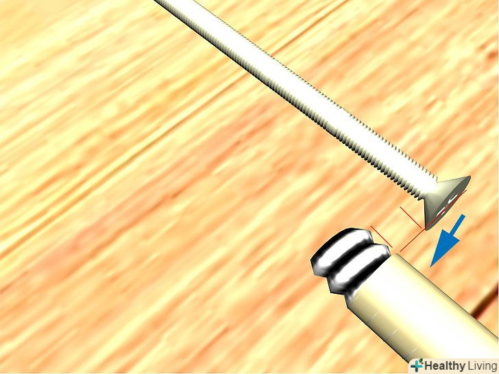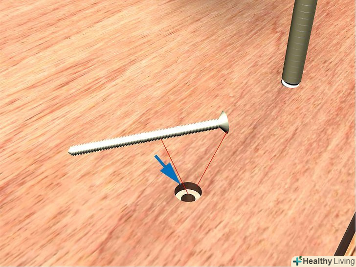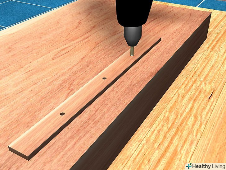 Просвердлите напрямні отвори в потрібному матеріалі. в направляючий отвір потім буде вкручений гвинт. Свердліть до тих пір, поки край клейкої стрічки не торкнеться робочого матеріалу.- Напрямні отвори також корисні для того, щоб переконатися, що гвинт буде закручений строго під заданим кутом. Це допомагає уникнути розщеплення матеріалу якщо товщина бруска невелика.
