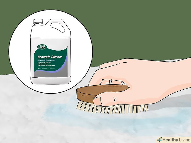 Після того, як ви змете сміття, то візьміть щітку і починайте мити підлогу спеціальним засобом для миття бетонних підлог.